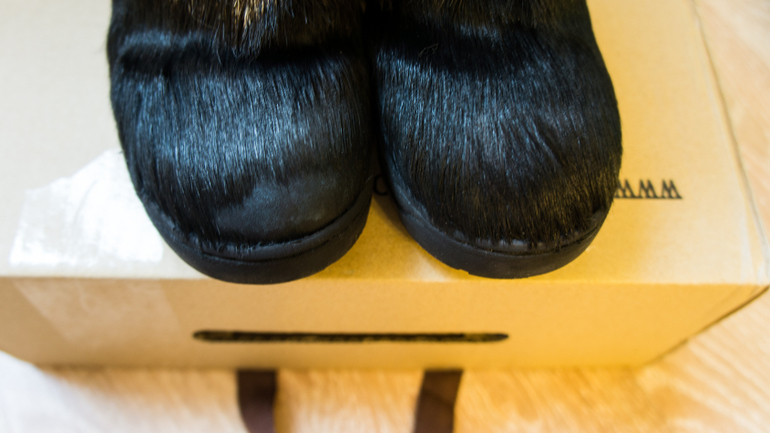 На носке правой ноги дефект - стерта шерсть (только на внешней стороне, разумеется), но так как внизу тоже черное, то в глаза не бросается. Остальное идеал!