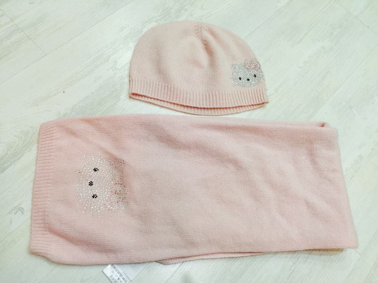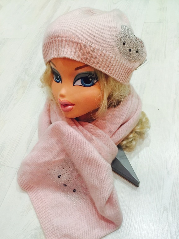 3. Нежнейший комплект Victoria Couture покупался к розовому пуховику, который тоже продаю, 100% кашемир, очень нежный и приятный, шарф ширина 25см, длина 171см, шапка ширина 24,5см, высота 18см, комплект 2600р