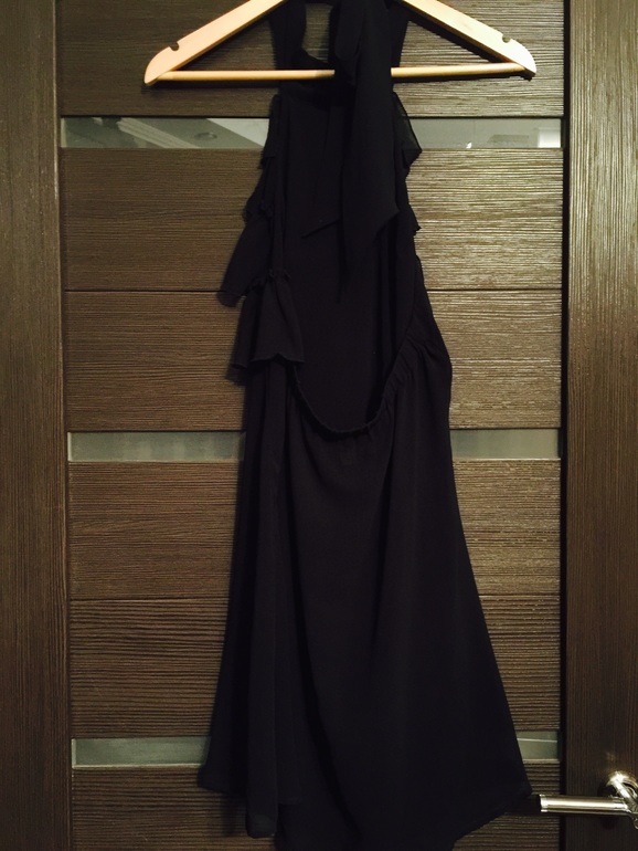 5. Платье размер s Paris Hilton новое 1000р, сзади открытая спина на ровне бюстгалтера, резинка, на шее завязывается бант, размер S, 70% шелк, 30% полиэстр, длина 78см, полуобхват груди 39см, резинка по спине, тянется до 42см, на грудь до 90см