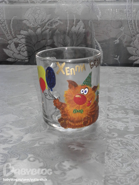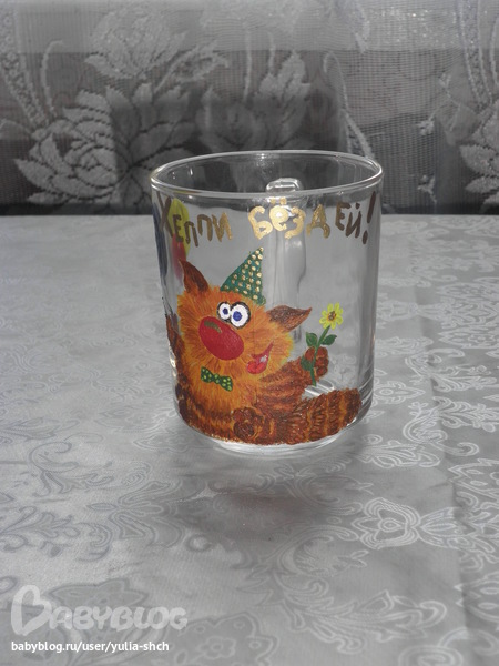 А в место банальной открытки я разрисовала ему чашку. :) Получился очень необычный и прикольный подарок.
