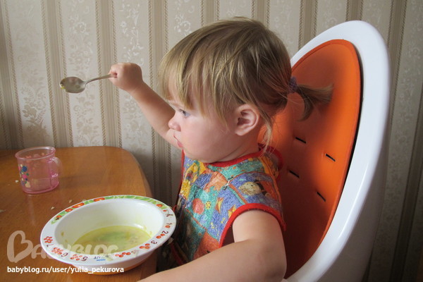 И вот, пока Даша была увлечена поеданием обеда и просмотром мультика, я умудрилась незаметно и кое-как сделать ей хвостик, сбегать за фотоаппаратом и даже пару минут полюбоваться
