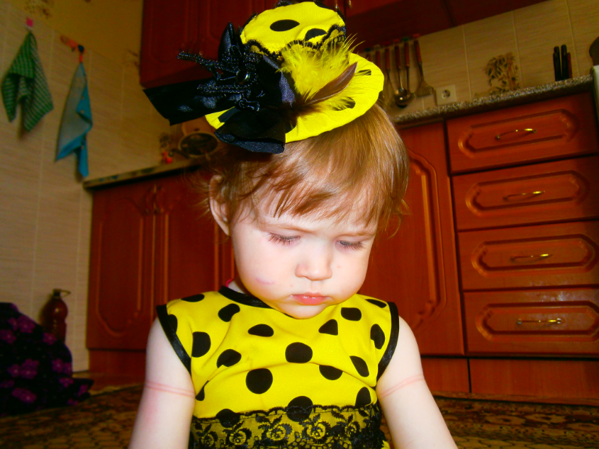 На правой щечке след от укуса. Так нас "поцеловал" один из гостей((((