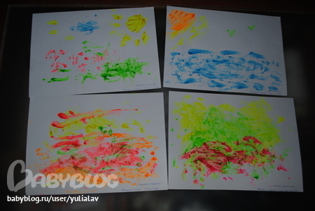 читаем по прежнему сдовольствием книжки, рисуем пальчиковыми красками, собираем пирамидки, учим названия фигур в сортере, устраиваем семейные оркестры: барабан (Тимофей), пианино (мама или Тимофей), дудка (мама), бубен (папа или Тимофей), а еще вокал (все ;)) жутко смешно)))