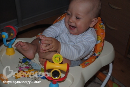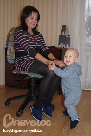 ходим мы пока за одну ручку, иногда отпускается сам и несется сломя голову... у нас период синяков и шишек((( смотрю некоторые малыши сначала встанут аккуратненько, равновесие поймают, потом пару шажков делают - это не про нашего Тимофея((( он не смотрит куда он идет - просто несется бегом непонятно куда, он у нас очень активный... выгребает все шкафы, снимает вещи с сушилки - вобщем ходим с ним целый день все разбрасываем и собираем - бесконечная такая возня... недавно забрался в ванную и опрокинул на себя ершик - поцарапал под глазом себе - ходил с синяком под глазом... так жалко его каждый раз как ударится - сердце разрывается, виню себя, что вот опять ведь недоглядела - а с другой стороны понимаю, что так и растут мальчишки... с синяками да шишками, особенно когда такой шустряк как у нас...