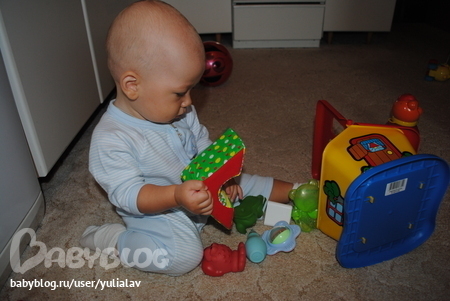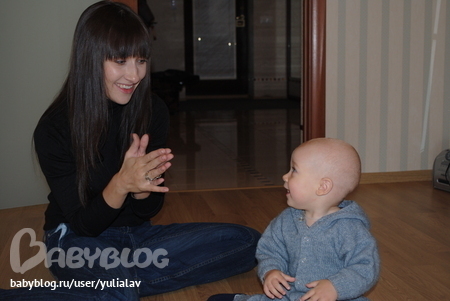 одному ему играть теперь неинтересно, мне стало очень сложно все делать - раньше я его отвлекала, рядом с собой садила, давала что-нибудь и так по 5-7 минут он играл сам, а я рядом была (то баночки-кремы-расчески (когда себя в порядок привести), то кастрюли-банки-поварешки (когда приготовить надо) и тд) - теперь бесконечное нытье: мамамамамамамамама...... еще говорит отчетливо БАБА, ЛЯЛЯ (про себя, когда хвалят его), АЙ-АЙ-АЙ (когда ругают и пальчиком грозит как мы)))), ПАПА раньше говорил хорошо, сейчас только мычит на него - любит его безумно, как только папа появлется сразу в рев - "бери меня скорей"!!! ладушки играет - с 8 месяцев, пока-пока, привет тоже машет с 8 мес.
