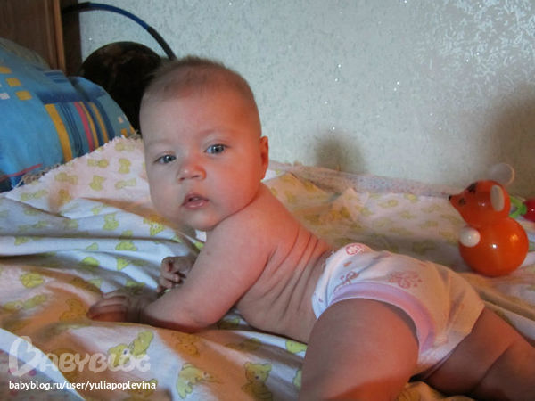 сходили на прием к врачу, весим 7200 рост 63, 14 августа вторая АКДС будет, гемоглобин 105 опять низковат, пили целый месяц ферумлек, в итоге кровь надо повторно сдать, начали кушать кабачок + цв капуста, гречневую кашку безмолочную разбавляем смесью т. к. титьку бросили в 4 месяца, и грушевое пюре фрутоняня. Папа наш совместно с бабулей постригли ребёнка