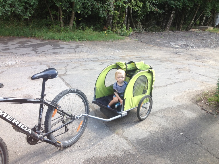 А ещё мы катаемся на велосипедах, Степка на велике и я с Тимой) Тимоха в вело-коляске )
