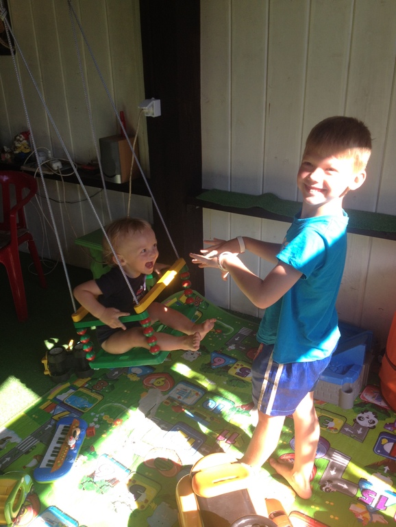 хорошо им вместе, Степка придумывает разные игры с участием Тимы. Он у него и пассажир и вагончик и матрос ) и ОЧЕНЬ мне помогает.