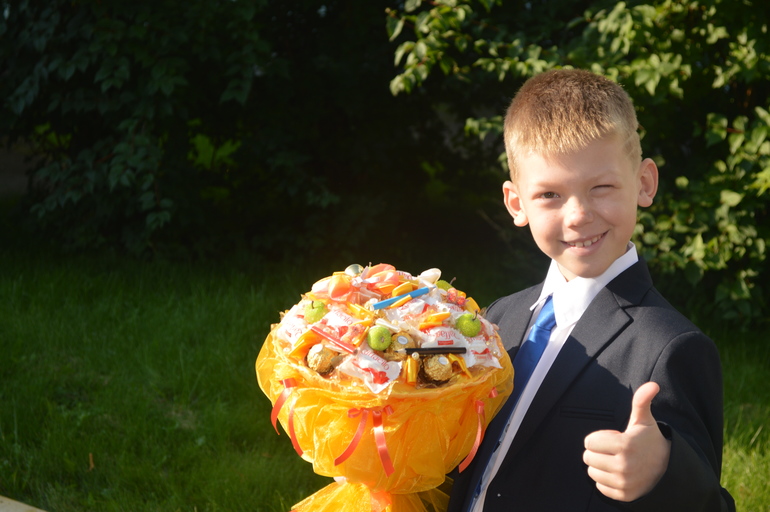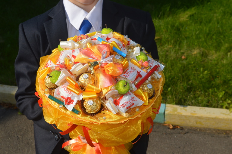 а букет из конфет получать гораздо приятнее, чем обычный) это я как бывший классный руководитель говорю