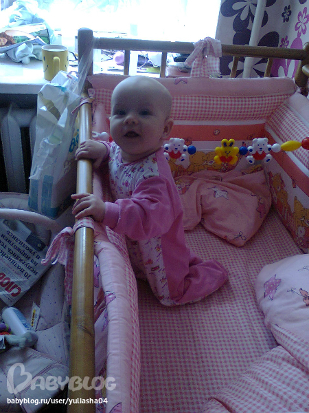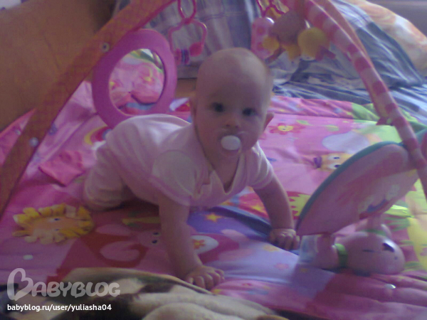 из новых умелок мы начали ползать и присаживаемся на бочок, скоро будем наверно уже сидеть и еще встаем сами в кроватке на коленочки))