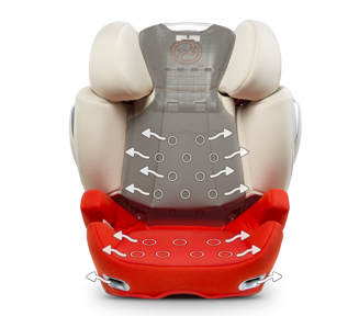 Для того чтобы обеспечить наилучшую защиту и комфорт на протяжении всего использования, автокресло CYBEX Solution Q2-fix имеет встроенную регулировку высоты и ширины - новая функция безопасности для оптимальной регулировки сиденья по росту ребенка. Управление механизмом одной рукой и 11 позиций регулировки позволяют изменять высоту и ширину сиденья одновременно. Сиденье может вырасти до 8 см в ширину и до 20 см в высоту. Ребенок, таким образом, всегда остается в зоне оптимальной защиты головы и плеч и не чувствует себя скованно, даже в конце периода использования.