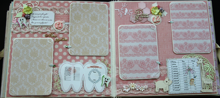 1. Альбом формата 30*30. Содержит 16 красочно оформленных страниц (12 из них посвящены каждому месяцу малыша); страницу, посвященную ожиданию малыша; страницу, посвященную выписке из родильного дома; страницу, посвященную празднованию годовасия и конверт под диск.