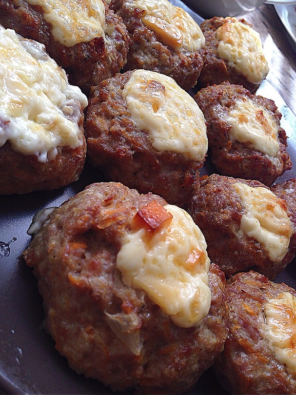 Потом делаем корзинки из фарша туда сыр плавленый у меня хохлонд был