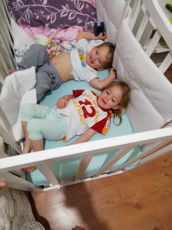 29 мая нам исполнилось 2 года. Вроде не много, но уже человеки, которые показывают свой характер хороший и не очень. Можно сказать что всю весну, а точнее с 20 марта мы сидим дома. Тут в Турции детям запрещано выходить на улицу, на данный момент разрешили по средам и пятницам с 14:00 до 20:00. Но хорошо мы живём на первом этаже (очень низкий) и мы часто гуляли около нашего балкона во дворе, территория дома закрытая и можно сказать с дорог нас не видно. Ильхан у нас очень капризный мальчик, часто плачет. Страдальцем его называю. Не любит чужих людей, особенно мужчин. Приходили гости на др к женщинам в принципе в течении часа привыкает, потом уже играет и тп. На мужчин же просто истерика бесконечная. Селин сразу ко всем идёт на руки. В последнее время тоже капризная и непослушная. Все игры заводит она, типо залезть на стол, кровать, прыгать и тп. Засыпают они сами. Ура! Встаём по будильнику в 8 утра. Днем кладу в кровать в 13:20. В 13:30 обычно спят. Спят 1,5 - 2 часа. В 15:30 точно буду. На ночь в 21:20 кладём. Там они бывает быстро засыпают, бывает нет. Если слышу что шумят, так шикаю им в дверь спать несколько раз сразу успакаиваются 😁. В принципе спят всю ночь без проблем. Ттт. Но спим мы с белым шумом. Пока меня это устраивает. Еда... оффф. Больная тема еда и Селин. Очень очень плохо ест. На ужин сегодня поела только салат огурцы помидоры. Потом в рот напихала рис так и сидела с ним. Но зато потом папа принёс клубнику, абрикосы. Это за радость поела. Я не знаю откуда у неё энергия и когда у неё наладится эта еда. Малоежка видно на всю жизнь. По весу она примерно 9400, ильхан 11300. Рост не знаю. По речи Селин много говорит слов, что на, русском, что на турецком. Считает если есть настроение, но на турецком. Повторяет в принципе все слова, но тоже если есть настроение. Но если спрашиваю как её зовут говорит Иха (Ильхан). Ильхан же намного меньше слов знает, но как то последние 10 дней появились новые слов. Горшки. Ну горшки купила как 2 недели назад. Никто садится не хочет на них. Селин только перед дневным сном как три дня сидела и даже делала дела.. А так после сна вообще не реально, так все без настроения. Вообще не знаю пока как наладить этот процесс. Ну да ладно