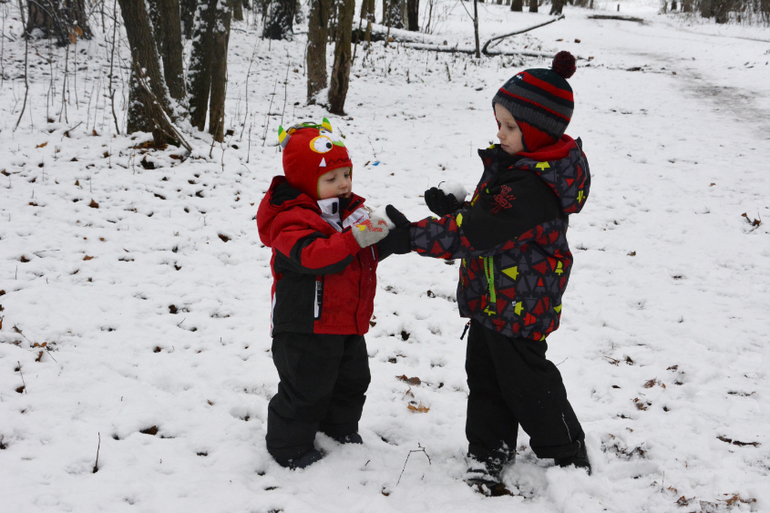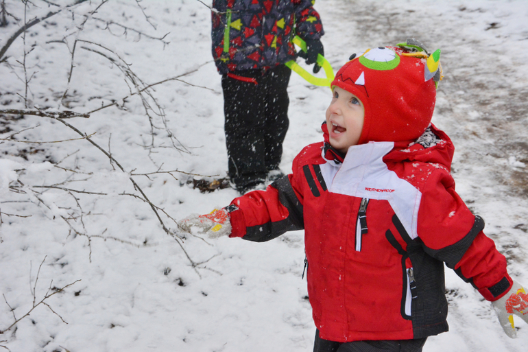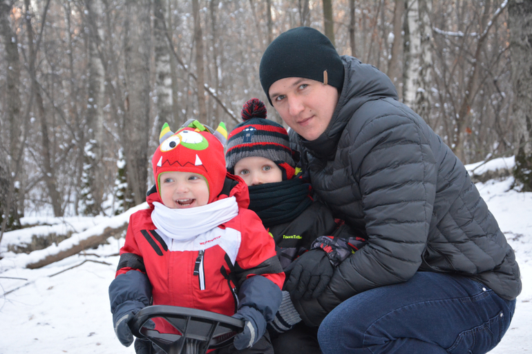 Смел, как и брат, любовь к снегокату невозможная, как уж их катает папа, ни грамма страха, а ведь и в снег падают, но хохочут).