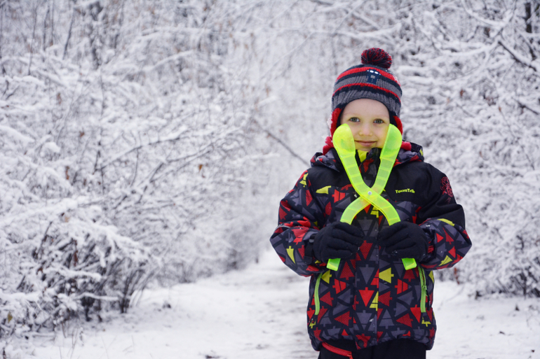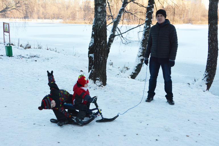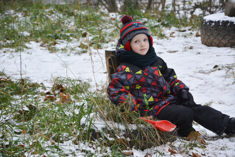 Ему всё и всех жалко). Даже пластиковый стаканчик, который попал под наш снегокат).