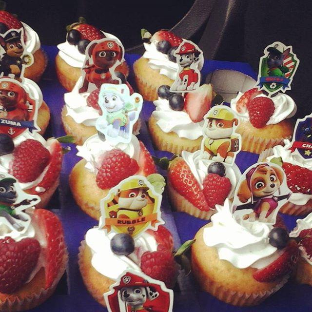 В костюме Давид и пошёл в дет.сад и понёс капкейки с топперами Paw Patrol.