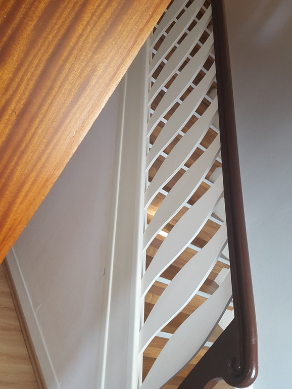 Перила,красили сама(тут кто какой цвет хочет)..если не соврать, лестница полностью была серая цветом..