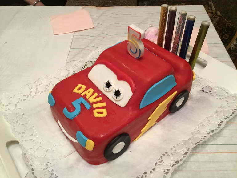 Привезла с собой мастику и пищевые краски, без спец инвентаря выкрутилась и сделала загаданный ребёнком торт-Маквин. Это уже 3-й у меня по счету, предыдущие были на заказ, так что сын исправил всю несправедливость ситуации!