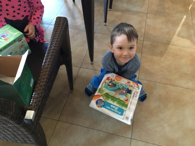 Ах да, и так вышло, что в Софиин д.р. он сново от нас получил подарок, лишь по причине, что робот опоздал и праздник у него ассоциирован всё же с домом, а нас дома не было.