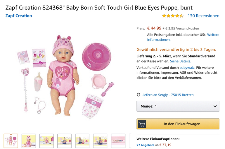 У нас ребенок просил пупса, мы приехали в магазин,я уже настроилась на борна (терпеть их не могу) Ребенок заметил у борна горшок ,скривила нос и сказала -фу,горшок... он же будет вонять! (мы разубеждать не стали))Папа подал ей готца,с ним довольные и ушли)) На него прекрасно подходят одежки детские на размер 54-56. ))) Есть кукла Лоурен,она с волосами, которые стали паклей! Их никто не пробовал чесать,свалялась сама((