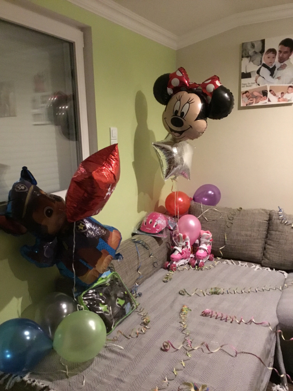 От нас с мужем ролики с защитой и шлемом. Шарики надула последним гелием.