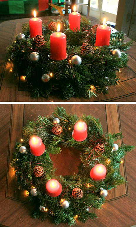 Собственно адвентский венок, зажгла все свечи для наглядности