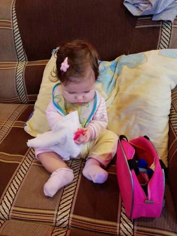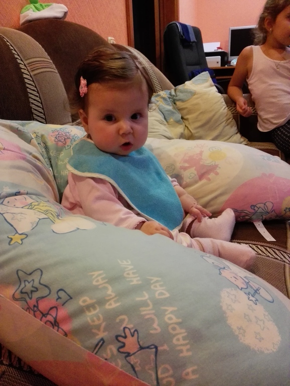 смотрю,оторвалась,сидит...Я ее назад,она психует и снова торчком)