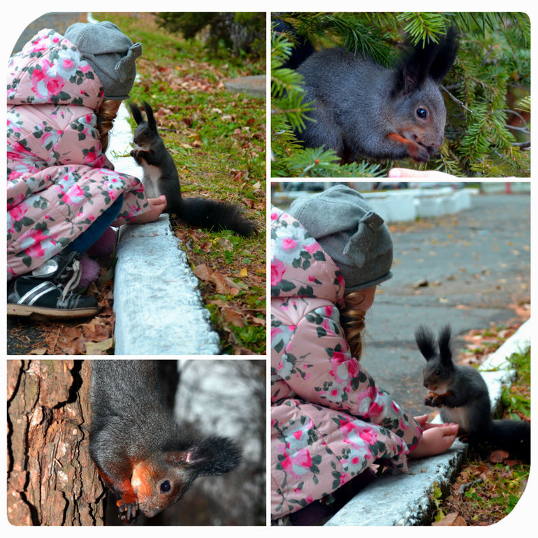 Сегодня был выходной и стояла хорошая погода, решили поехать в санаторий и покормить белок, Ксения их очень любит.