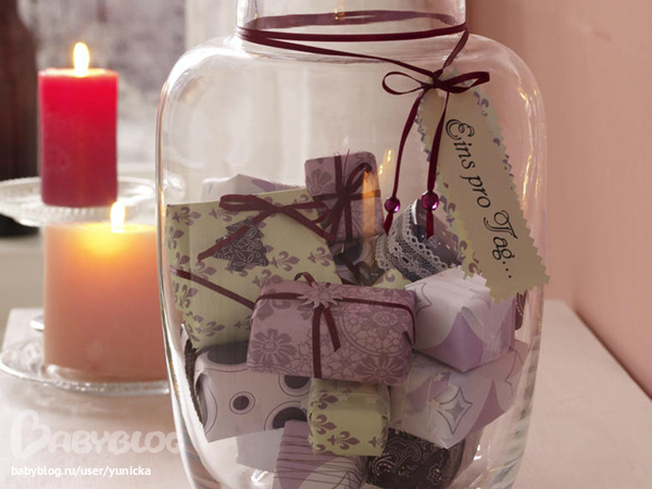 Вот и меня накрыла предновогодняя волна, причем по-особенному, на европейский манер. Видимо накладывает отпечаток предстоящаяя поездка. Решила сделать календарь для своих лучиков. Мужу, конечно проще все организовать, а вот с малышуней придется поморщить извилины... Сладости нам рано, поэтому с завтрашнего дня начинается мозговой штурм на эту тему. Что припрятать в заветные кармашки/ окошки... ну и собственно подборка понравившихся идей под катом