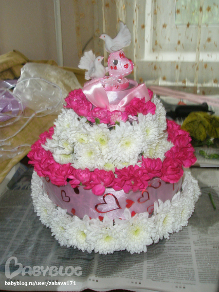 всем привет,подскажите кто-нибудь какой можно сделать букет на свадьбу из основы оазис.