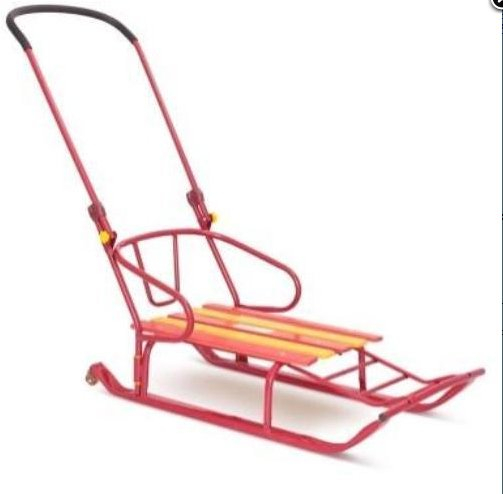 3. санки на колесиках в идеальном состоянии с ручкой и чехлом современным и ярким 500 р