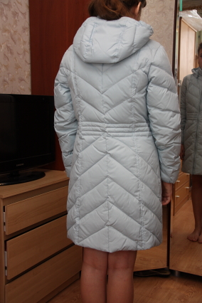 Нежно-голубого цвета.Покупалась в спортмастере. Б/у мало. После химчистки,обработана водоотталкивающим средством.