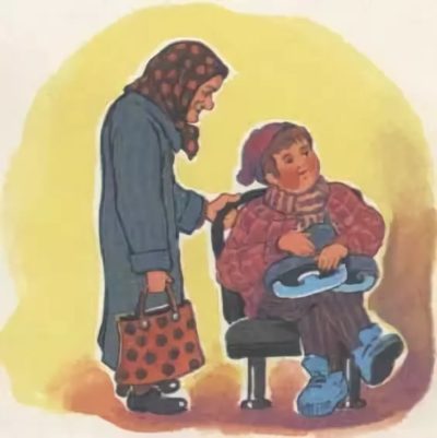 Напротив ребёнка старушка сидела.