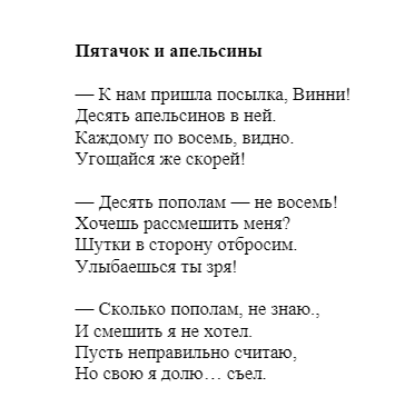 Владимир Шебзухов 6 лет Владимир Шебзухов «Пятачок и апельсины» читает Курябова Настя Владимир Шебзухов Стихи о детях и для детей читает Курябова Настя 10 лет г. Иваново Планета книг Союз писателей https://knigi-market.ru/anekdoty-dlya-detey-vladimir-shebzukhov/ Посмотрите еще 20 записей на эту тему Отменить Ответить Владимир Шебзухов «Благодарный зритель» Владимир Шебзухов "Стихи Пятачка" читает Таламанова Полина Чаты Беременных Выберите чат: Январята-2026 Февралята-2026 Мартята-2026 Апрелята-2026 Майчата-2026 Июнята-2026 Июлята-2026 Августята-2026