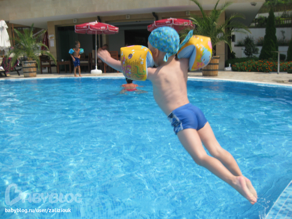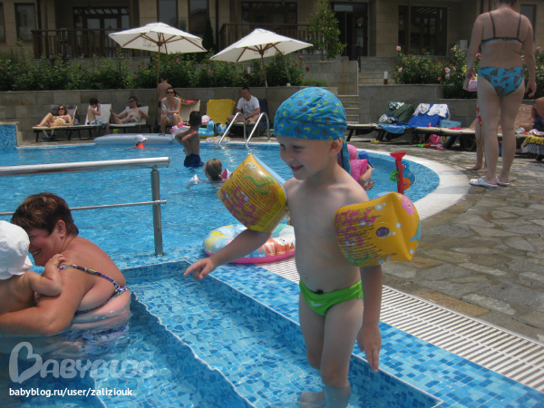 Т.к. в бассейне он себя чувствует гораздо уверенней чем в море, то на море ходим гораздо реже, но я это дело исправлю - с завтрашнего дня только море!!! )))
