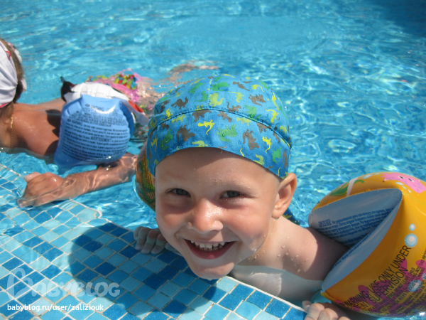 Позже купили ему нарукавники, стал тренироваться плавать с ними в бассейне - умора просто, ножками перебирает как маленькая собачонка )))))))