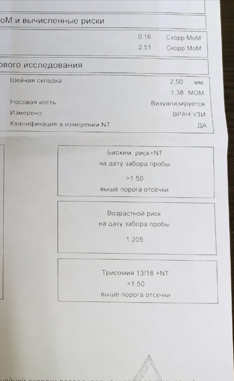 Сходила генетику сегодня, сдали наконец-то расширенный НИПТ тест, решили сдать сразу на 18 синдромов, хожу пока ни живая ни мертвая, ждать 15 календарных дней! Напомню первый скрининг показал - отличное узи и плохую кровь - 1:50 на синдромы дауна, эдвард...