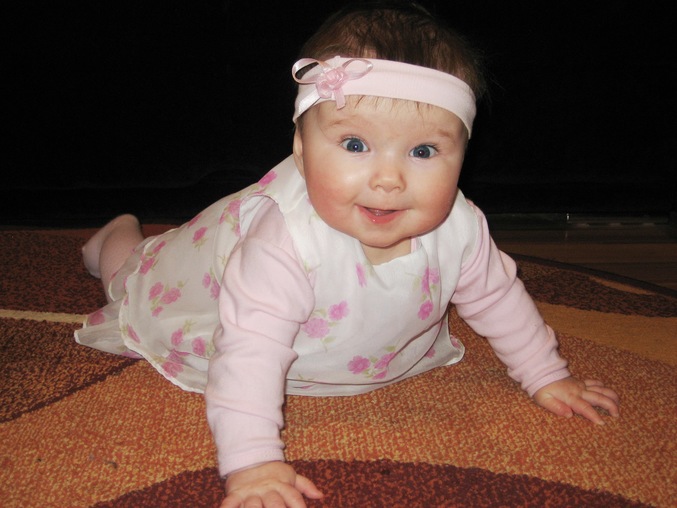 За этот месяц мы стали кушать мяско курицы,кролика,индейки со всевозможными овощами,очень уж нам нравиться.От фруктов нам сказали пока отказаться,за месяц наверное пару раз дала доченьке полакомиться.Грызем(насасываем) баранки:)Научились ползать вперед,такая умница.Хватаем все ,что попадается на пути и сразу в рот...Знакомимся так со всем:)Пульт,телефон и рекламаааа это всёёёё,ничего интереснее для нас пока нет