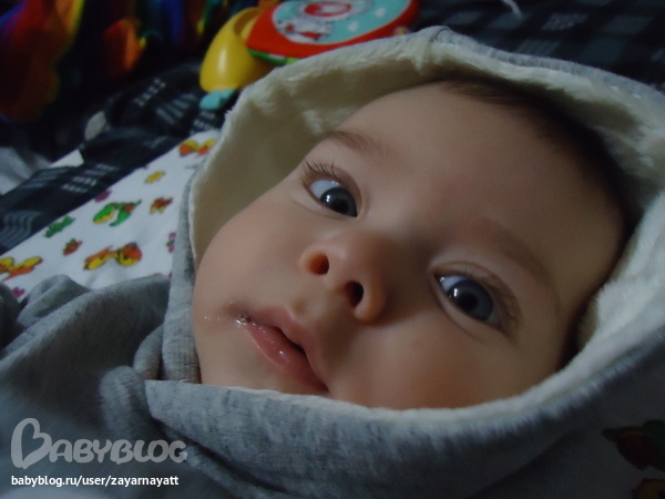 Из новостей еще огромное желание Полины сидеть. Я сначала жутко испугалась, перерыла весь интернет, найдя миллион мнений! теперь с Полей не поиграешь в ладушки и не поделаешь разные зарядки с участием рук, теперь Поля пользуясь любым моментом, когда кто-то берет ее за ручки сразу же срочно подтягивается, смешно так кривит рот от натуги, и в итоге садится. Уложить обратно праактически нереально, Полик-неваляшка! В шезлонге вообще милое дело, можно ухватиться за края и хотя бы косенько как-нибудь, заваливаясь на один бок, сесть:)