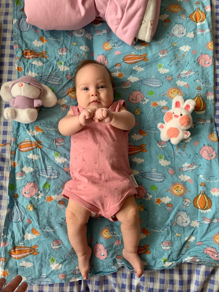 10.11.25 посетила офтальмолога. Все ок. В этот же день прививки: ротавирус, гепатит В, пневмококк. Негативная реакция: неукротимый плач вечером (даже вызвали неотложку). Прошло самостоятельно (грудь, сон на моем животе). 11.11.25 - посетила с папой участкового педиатра. Рост 56, вес 5700.