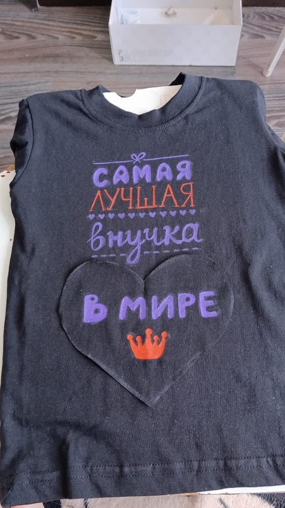 "предвкушая" их реакцию, решила начать со свекрови 😁 Решив, что надо что-то сюрпризом, купили краски по ткани и нарисовали надпись на футболке. Самое важное закрыли сердцем из такой же ткани, приколов его на цветные булавки. Вот готовый вариант почему-то не нашла на фото, надо поискать, может муж сфотал. Ну колхозно, зато с душой 😁 Не пинтерест, конечно...)