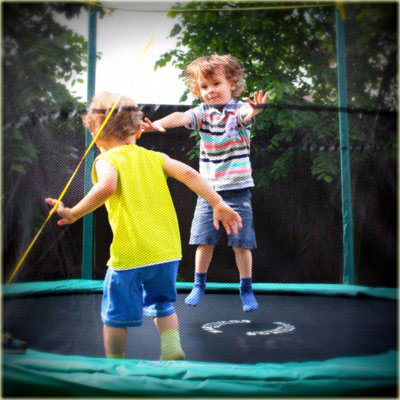 Затем дети с огромный удовольствием осваивали батут. Забегая вперед, скажу, что летом они скакали на нем, не зная усталости) А я наконец-то поняла, в чем прелесть манежей для детей) Запустил за сетку и свободен)