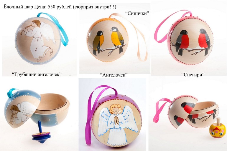 В наличии замечательные новогодние игрушки из дерева!!! Все шары с сюрпризом, они открываются, внутри волчок!!! А еще туда можно положить конфеты!!! Все игрушки на фото в наличии.