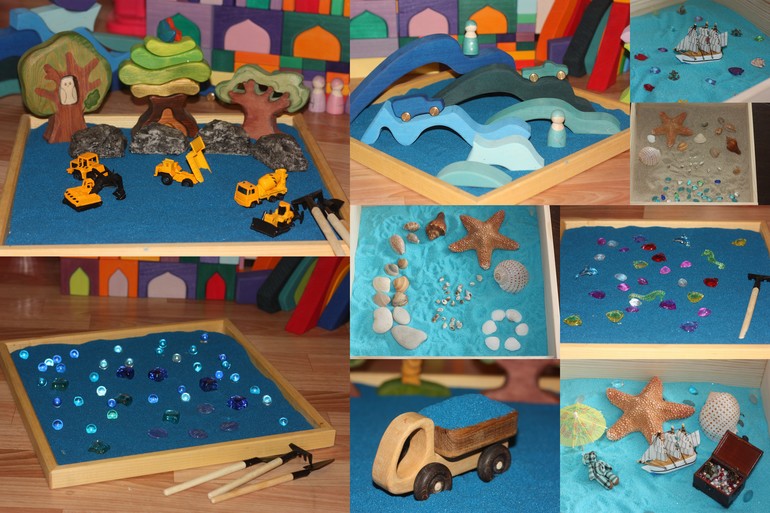 За окном осень, скоро зима и это самое время для занятий с детьми песком в домашних песочницах!!! Песок просто фантастический природный материал, он и моторику развивает и воображение, и лечит, просто чудо!!! И работать с ним приятно и легко, когда есть все под рукой!!!