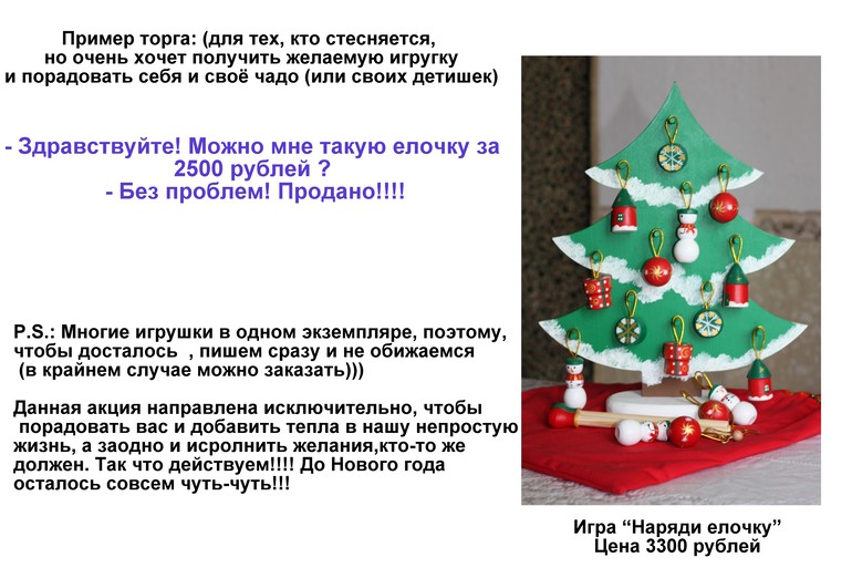 А если у Вас ребенок еще маленький, но очень любознательный, любящий все подергать и погрызть, то наши игрушки с елки отлично подойдут для украшения новогодний красавицы, ну а через годик можно будет уже и поиграть с малышом в эту замечательную игру!!!