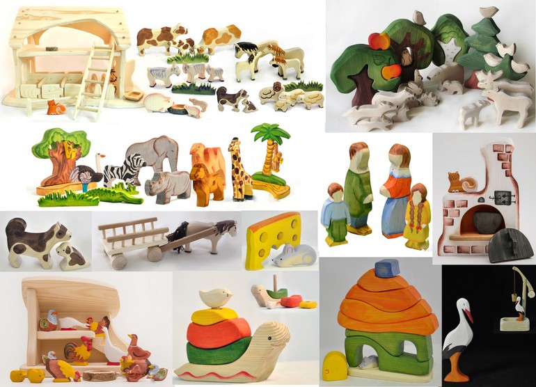 В работах мастерской используется древесина различных пород, льняное масло и безопасные краски.