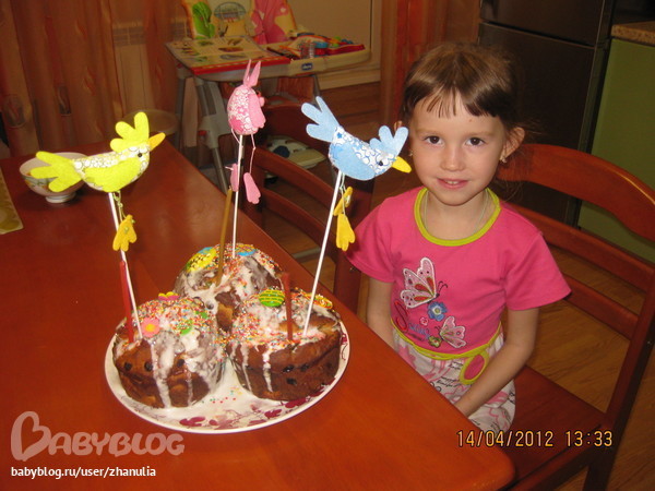 красивенькие!!! я считаю свое всегда вкуснее чем в магазинах- там то сахару пожалеют, то еще чего)) У нас мама, т. е бабуля стряпает много куличей и всем раздает- я пока не практиковалась)))