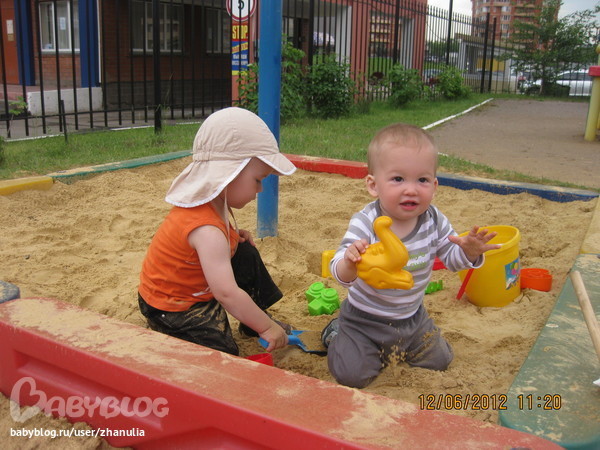 Маленький модник!!! у нас тоже песочница - это ВСЕ, фиг вытащишь из нее. Жан, а у тебя Даня песок в рот тащит? Я уже замучилась у своего Андрюхи его вытаскивать из-зо рта