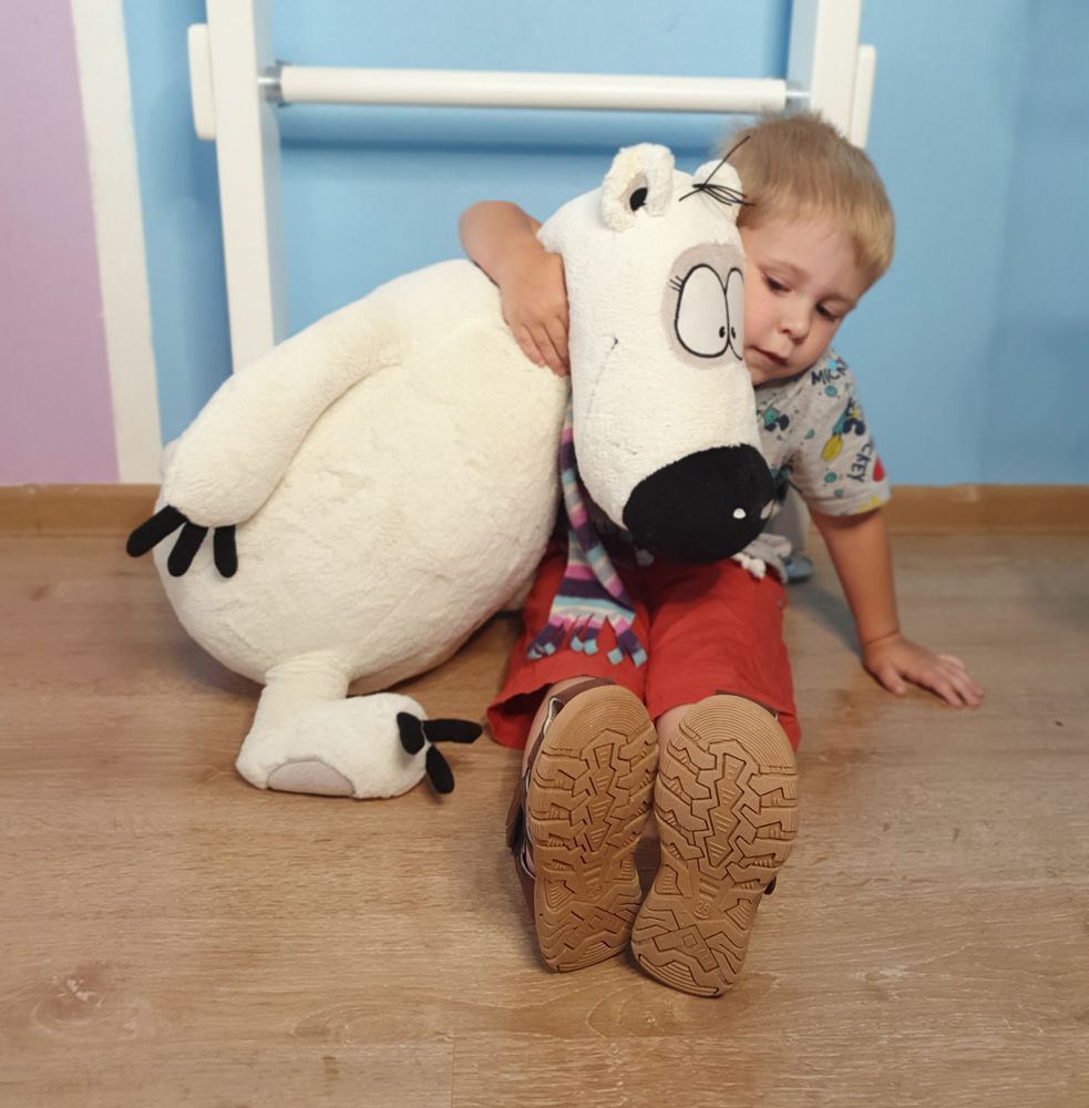 Материал плотный, прочный, внешне напоминает кожу. Очень удобно ухаживать за сандалиями. Просто протираю тряпочкой по мере загрязнения. При чем гулял сын в них и в дождь, и в грязь, и в песке возился. В общем прошли сандали все испытания. И прошли их достойно. За 3 месяца носки во внешнем виде не произошло почти никаких изменений.